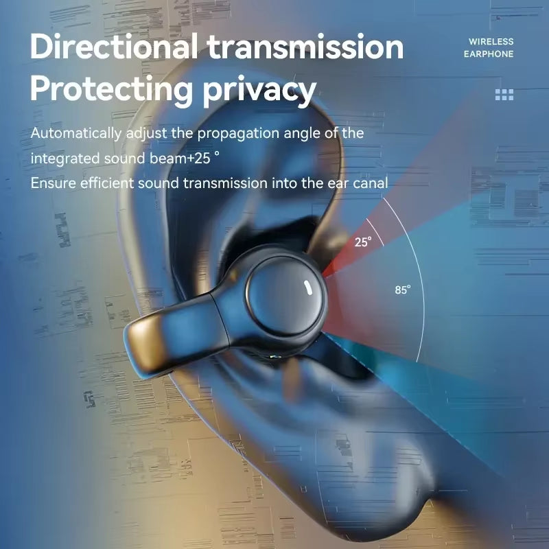 Features: 【Non in Ear Design】 The open ear design of the workout headphones can help you always understand the surrounding environment. Whether you are walking, running, or riding with the sport headphones, you can always pay attention to the surrounding environment, which is very safe. 【Lightweight and no pain】The Open ear headphones adopts the latest clip-on ear style, transmits sound through vibration, and uses the latest skin-friendly materials. There is no problem in wearing the sport headphones for a long time, and there is no need to worry about long video conferences and sports.The open ear earbuds are so light that you'll forget they're there after wearing them for so long. 【Fast charge and long battery life】 The open ear headphones can play continuously for 4-5 hours, and after 1.5 hours of full charge, it can play for 50 hours with a mini charging box. Hidden little secret, the open ear headphones charging box can charge your mobile phone, saving you the worries that your mobile phone will be out of power when you are away. 【IPX5 Waterproof】The IPX5 life-level waterproof performance protects the open ear earphones from sweat and rain, and will not be afraid of splashing water in any direction, allowing you to maintain perfect sports performance with the open ear headphones. 【One-Step Pairing and Easy Touch Control】: bluetooth earbuds adopts bluetooth 5.3 chip. Fast and stable connection. After first connection, these wireless earphones will connect with your device once you open the charging case, which is faster and more convenient. During using, you can touch either earbud to control the phone, such as the music switch, volume adjustment, phone calls, voice assistant, etc. No need to adjust through your mobile phones. 【HIFI 9d surround stero sound】:High quality components, faster response, high fidelity, combined with composite diaphragm horns Restoring music with high frequency brightness, medium frequency fullness, low frequency richness and elasticity 【HD calling】: High definition voice call Clear as face-to-face 【Game audio and video synchronization】:Low latency algorithm for games, with no perceptual to fully concentrate.Enter the battlefield. Only by synchronizing sound and painting can one experience their surroundings with sound