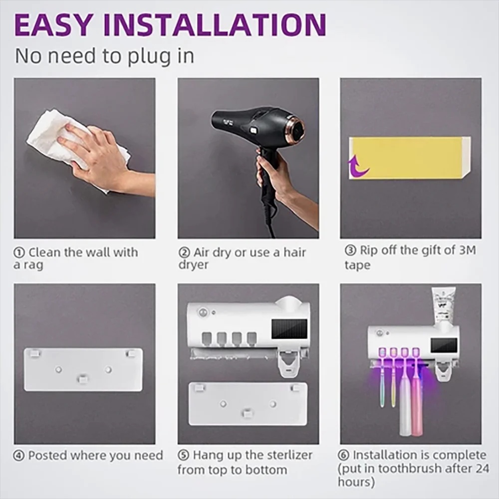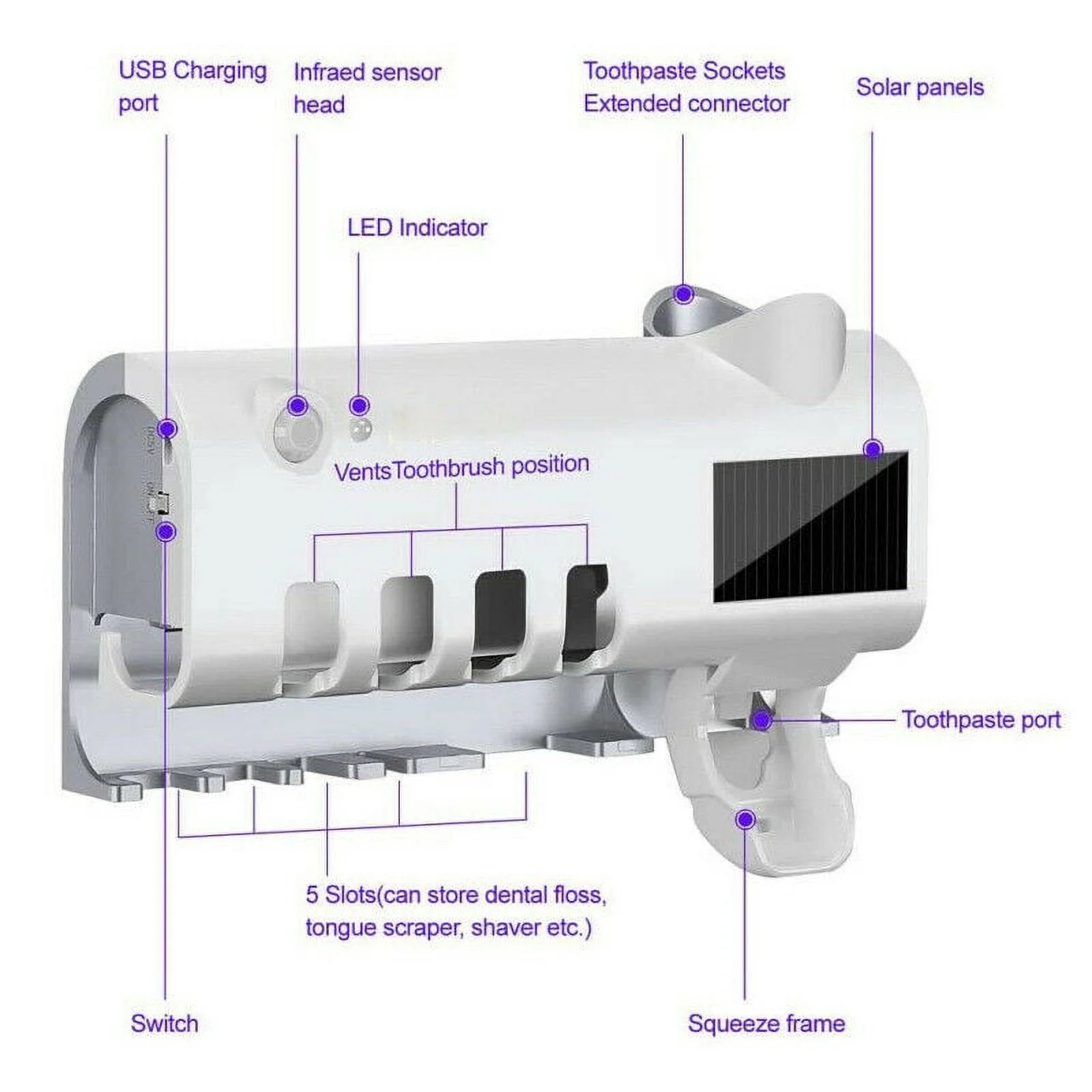 1 x UV Light Sterilizer Toothbrush Holder Cleaner & Automatic Toothpaste Dispenser