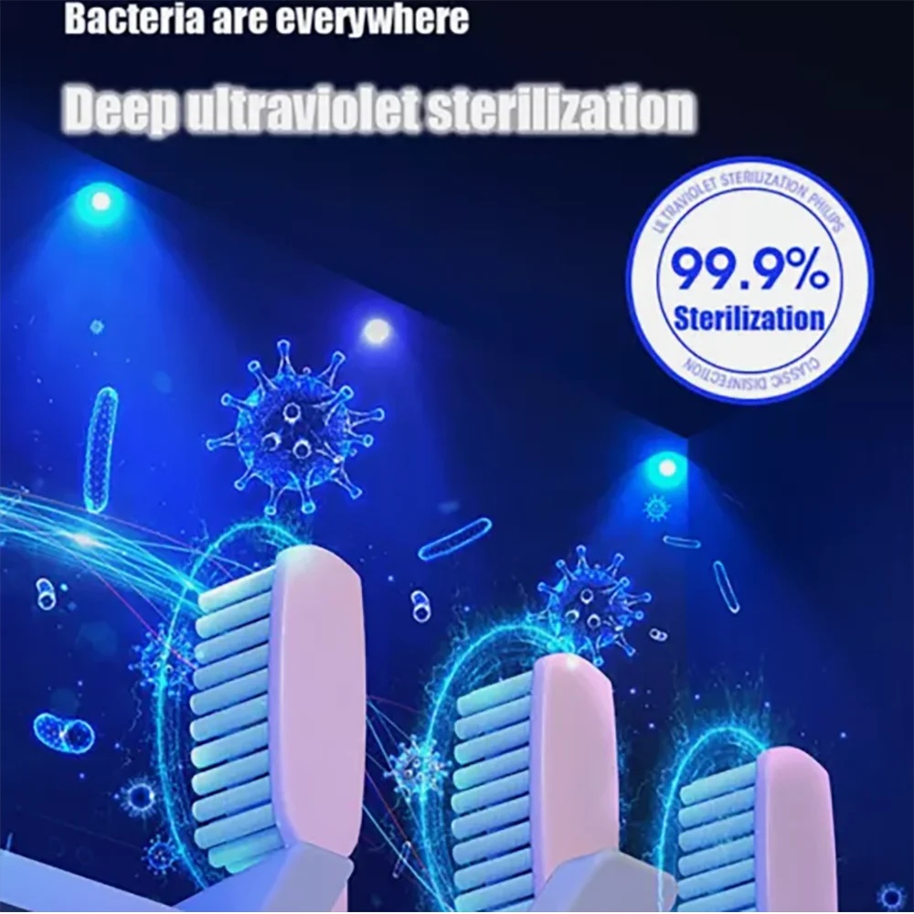Sterilizer Effect up to 99.99% - The toothbrush case with UVC light deeply sanitizer your toothbrush. Make you enjoy healthy and simple life with your family at anytime and anywhere.Toothbrush holder ensures that your family members have clean toothbrushes.