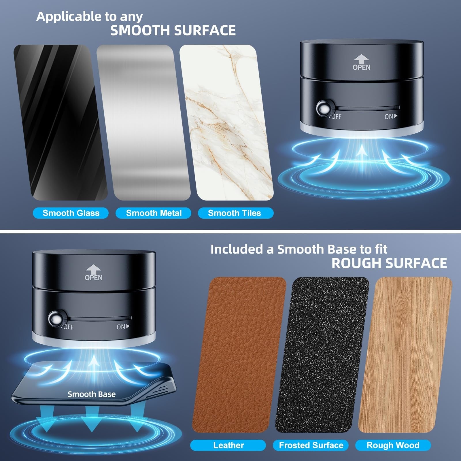 Vacuum Magnetic Phone Holder for Car, Upgraded 360°Suction Cup Phone Mount Foldable Magnetic Car Phone Holder Mount Retractable Suction Phone Stand for iPhone All Cell Phones /Car/Gym/Mirror/Shower 【360°Rotation & Dual-Axis Adjustment】2025 Upgraded vacuum suction magnetic phone holder for car features a 360°rotating base and 210°dual-axis folding arms.This suction phone mount can easily adapt to various usage scenarios, offering multiple viewing angles for optimal comfort during navigation or video calls. Providing convenient operation and an upgraded user experience. 【Strong Vacuum Suction & Stable Hold】360°rotate suction cup phone holder employs an innovative rotating-lock vacuum suction, boosting suction by 40% compared to traditional press-on mounts. This foldable magnetic car mount delivers the ultimate physical suction power No Need Charging. Unlike sticky mounts, this magnetic phone holder for car offers a quick-release design for easy repositioning without leaving any residue. It stays stable on bumpy roads or during sudden stops. (Note: When using on leather or rough surfaces, apply the included adhesive pads first to enhance suction power.) 【Dual-Sided Functionality, Multi-Scenario Usage】This magnetic suction phone mount is ingeniously designed with dual-sided usability. The magnetic surface can attract any magnetic material. The vacuum-suction side is compatible with a vast array of smooth surfaces. Suction magnetic phone holder can stick to car screens, mirrors, glass, marble, tiles, gym equipment and other smooth surfaces. Perfect for various scenarios like driving, working out, showering, cooking, or doing your makeup. This cell phone holder very compact and lightweight, it's a best choice for your travel. 【Stronger Magnetic Force】foldable vacuum magnetic phone stand features intelligent vacuum sensing technology paired with the N52 strong permanent magnets and a wider contact surface, providing a powerful attraction that firmly holds your 4" to 7" device. Support your phone even during sudden brakes, speed bumps, and diverse road conditions. 【Universal Compatibility】Our magnetic car phone holder mount is compatible with all phones. The precise magnet position perfectly matches the magnetic magnet on iPhone 16/15/14/13/12 series and all other phones compatible with magnetic, The magnetic suction mount fitting all vehicle types. Installation is a breeze, allowing you to focus on driving. For Android phones and iPhone 12 series below please stick the extra magnetic ring included️. Simply attach the metal ring to the back of your phone or case and let it sit for 24 hours to maximize adhesion strength.